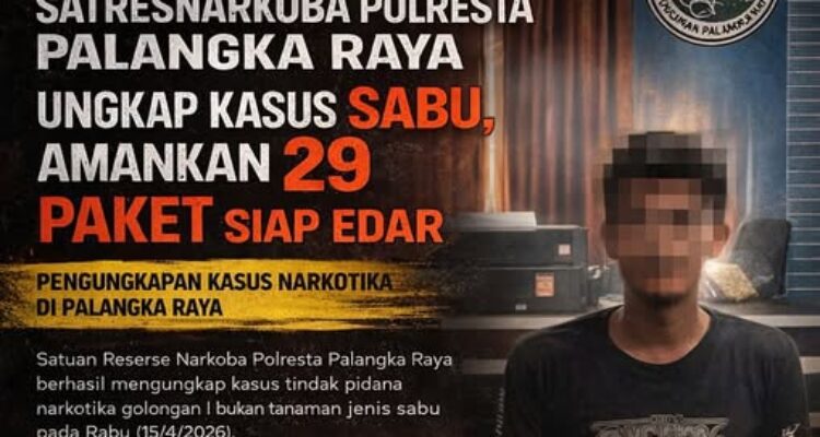 Pengedar Sabu Dibekuk di Pahandut, 29 Paket Siap Edar Disita Kalteng, Peristiwa|April 16, 2026April 16, 2026oleh redaksibetangborneo@gmail.com PALANGKA RAYA, Beritakalteng24.com – Satuan Reserse Narkoba Polresta Palangka Raya berhasil mengungkap