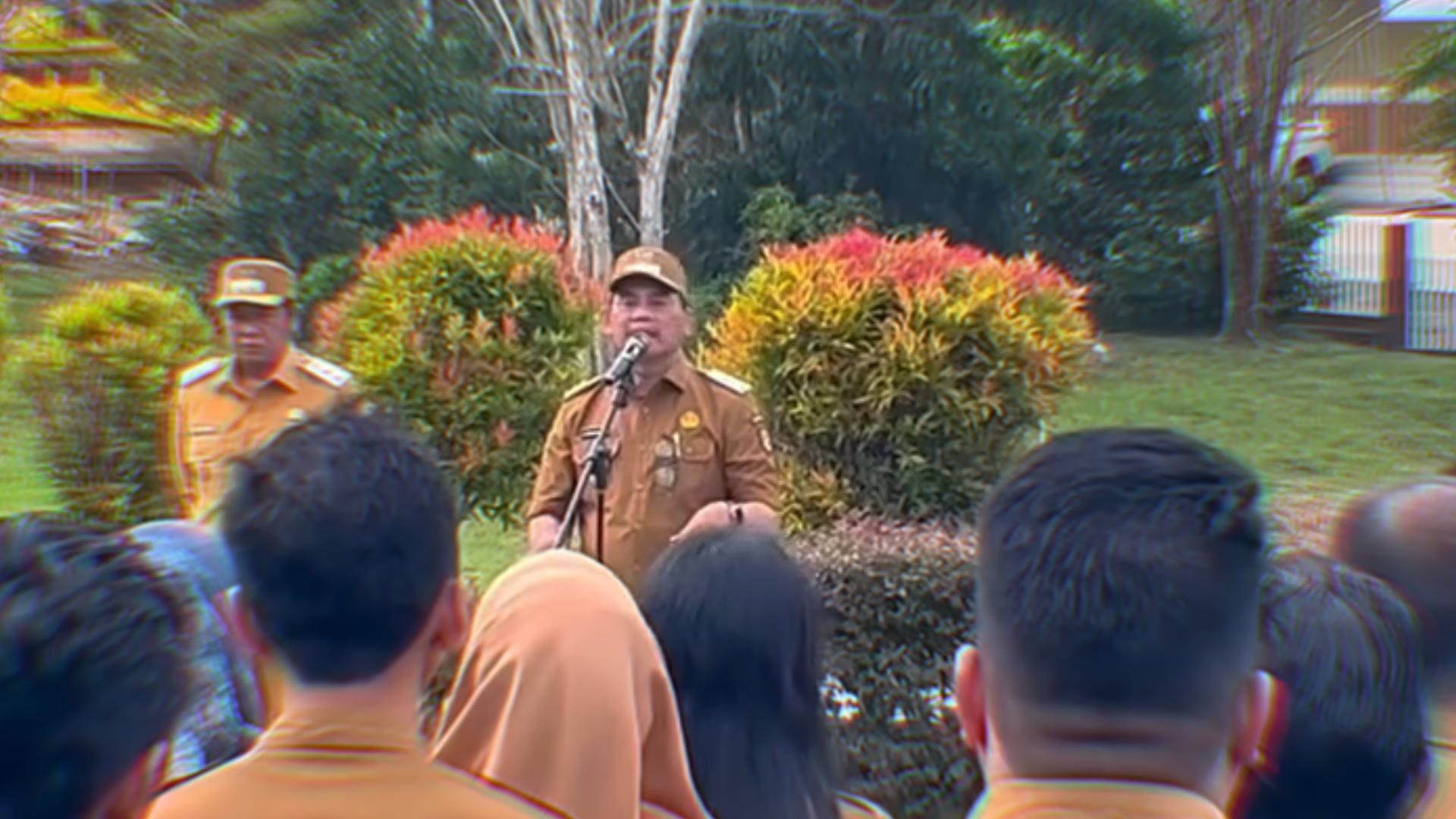Kepala Dinas PUPR Barito Utara, M. Iman Topik, memberikan apresiasi atas kehadiran langsung Bupati dalam apel tersebut.