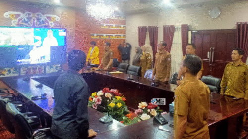 Kegiatan tersebut diikuti secara virtual dari Aula A Kantor Bupati Mura, hadir dalam kesempatan ini Bupati Mura melalui Asisten I Setda Kab.Mura, Rahmat K. Tambunan bersama sejumlah pejabat terkait.