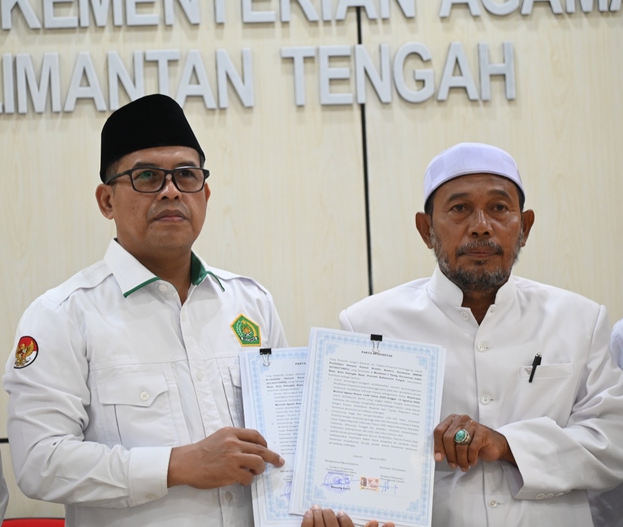Palangka Raya, Beritakalteng24.com – Kementerian Agama melalui Direktorat Pesantren menyerahkan izin operasional pendidikan diniyah formal tingkat wustha dan ulya untuk Pondok Pesantren Manba’u Darissalam Palangka Raya, Senin (17/11/2025).