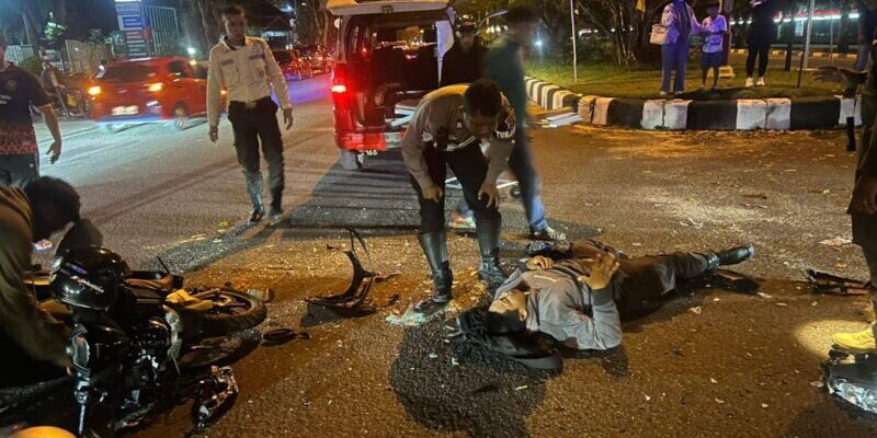 PALANGKA RAYA, Beritakalteng24.com – Personel Unit Turjawali Satuan Lalu Lintas (Satlantas) Polresta Palangka Raya dengan sigap mengevakuasi korban kecelakaan lalu lintas yang terjadi di depan Kantor Gubernur Kalimantan Tengah, Jalan G. Obos, Palangka Raya, Rabu (22/10/2025) malam, sekitar pukul 19.15 WIB.