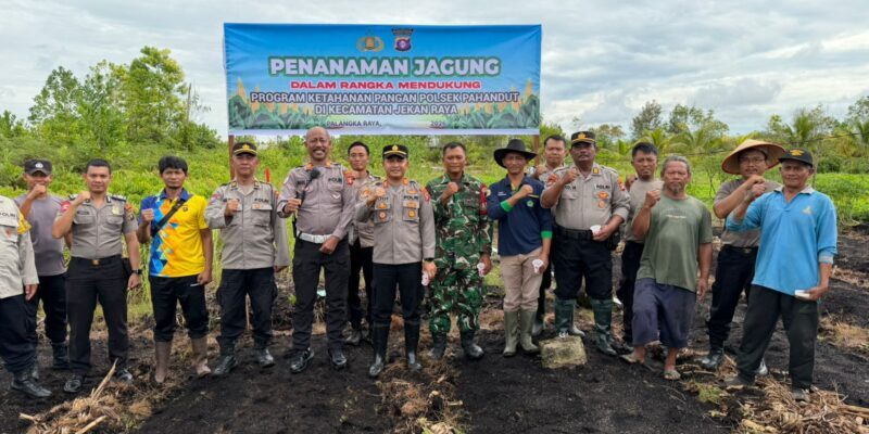 PALANGKA RAYA, Beritakalteng24.com – Dalam upaya mendukung kedaulatan pangan nasional, jajaran Polsek Pahandut melaksanakan penanaman jagung serentak di wilayah Kecamatan Jekan Raya, Kota Palangka Raya, Jumat (13/2/2026) pagi.